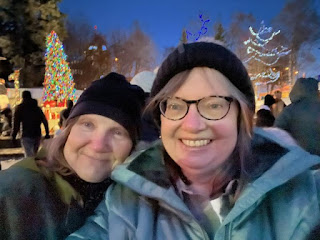The Tree Lighting, scheduled for 5:00pm, didn't happen until 5:20. We had hot chocolate while we waited and watched the crowd. There were fire pits to gather around if you needed to warm up and several opportunities for festive selfies. Santa and his Helpers arrived and the festivities began!